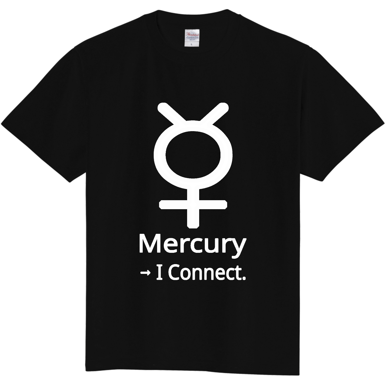 占星術の天体記号・水星の記号 ・英語名をプリントしたtシャツ。コミュニケーションと知性を司る“水星”のTシャツ。