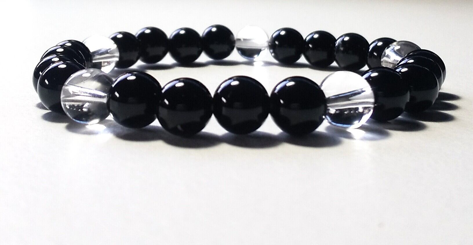 天然石:オニキス8mm×20個・AAA水晶8mm×5個