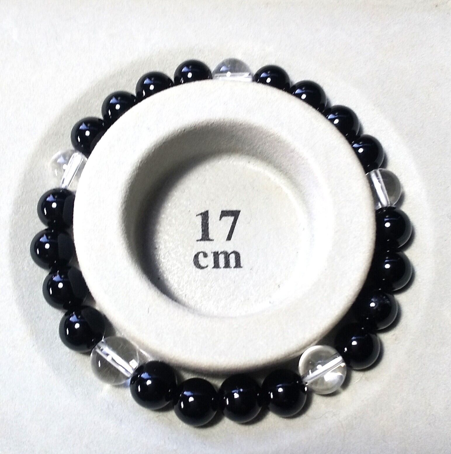 パワーストーンブレスレット オニキス 水晶 五芒星 お守り ハンドメイド 17cm
