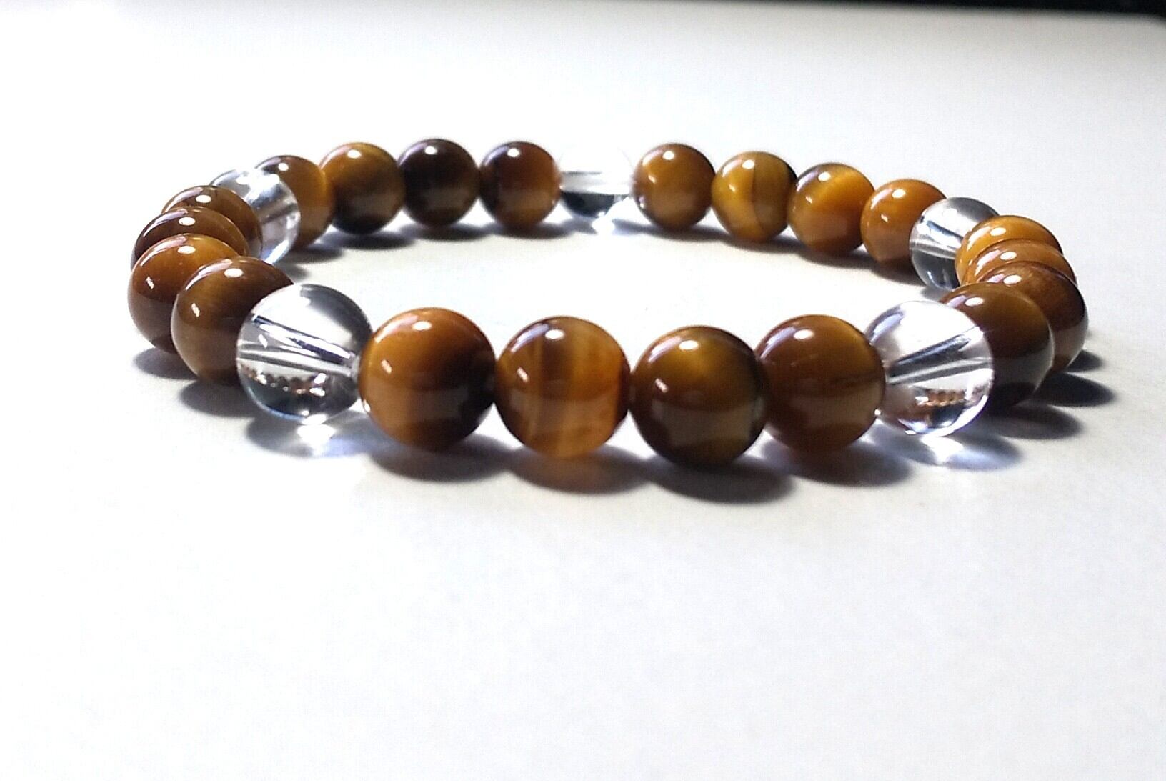 天然石:イエロータイガーアイ8mm×20個・AAA水晶8mm×5個