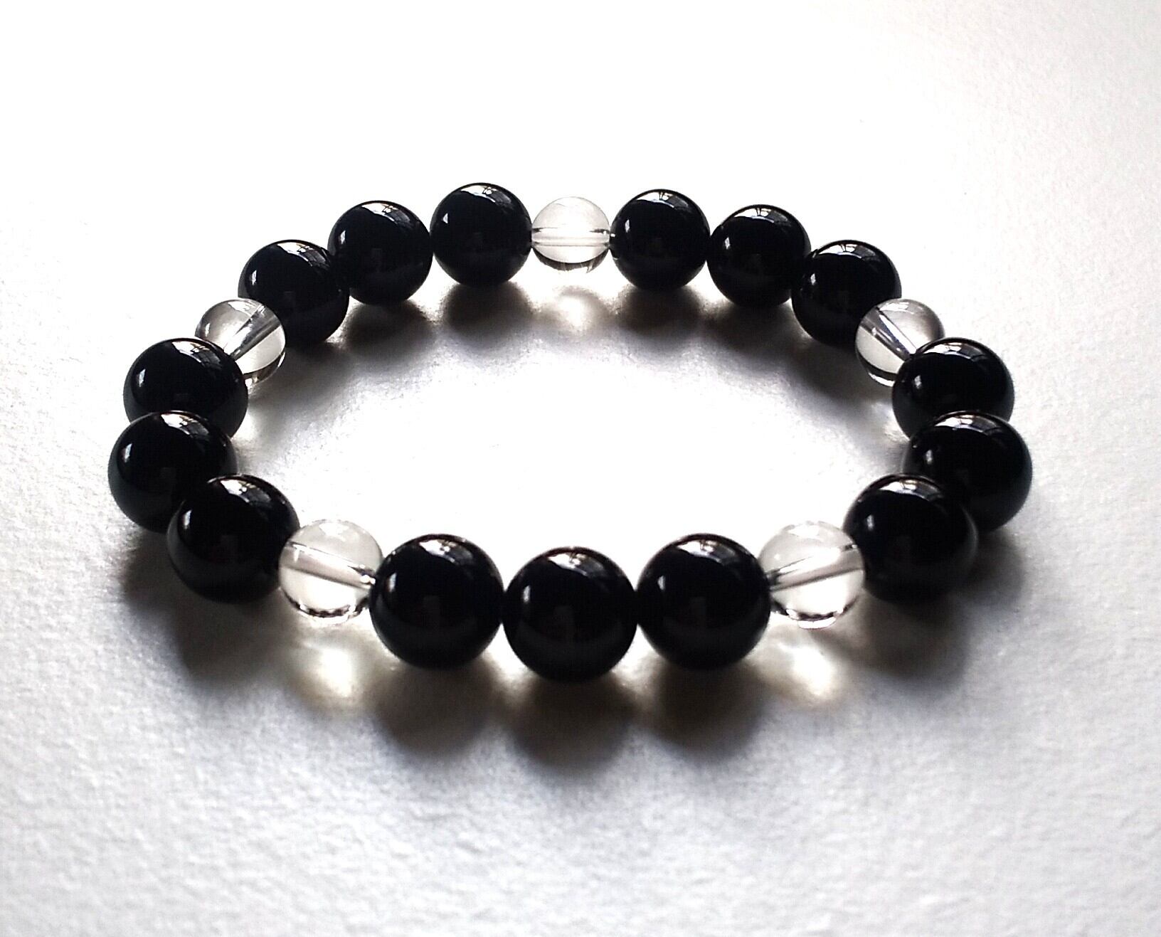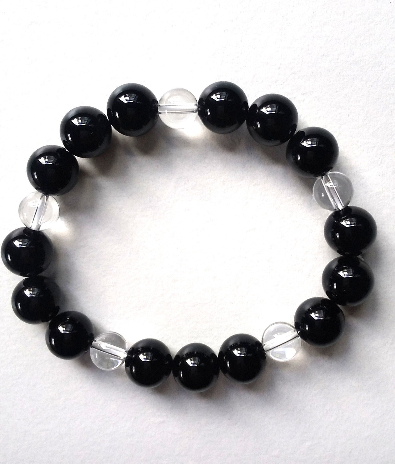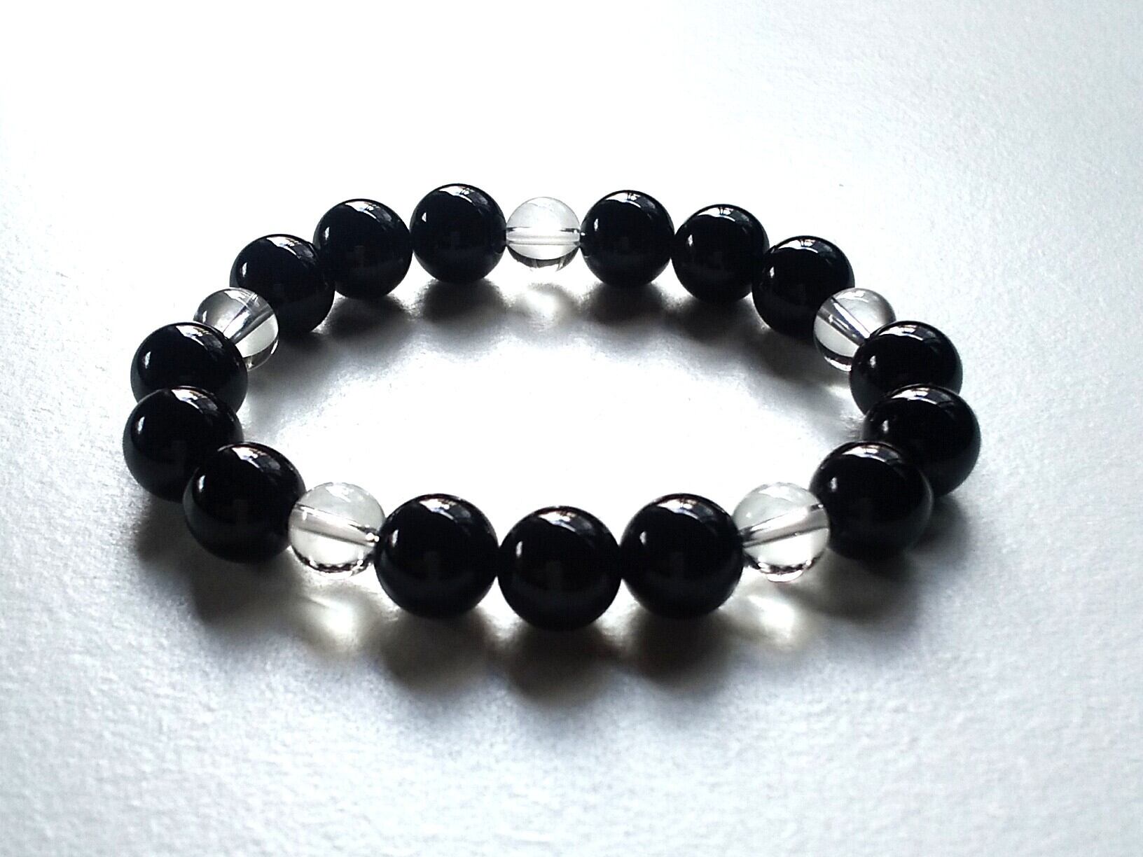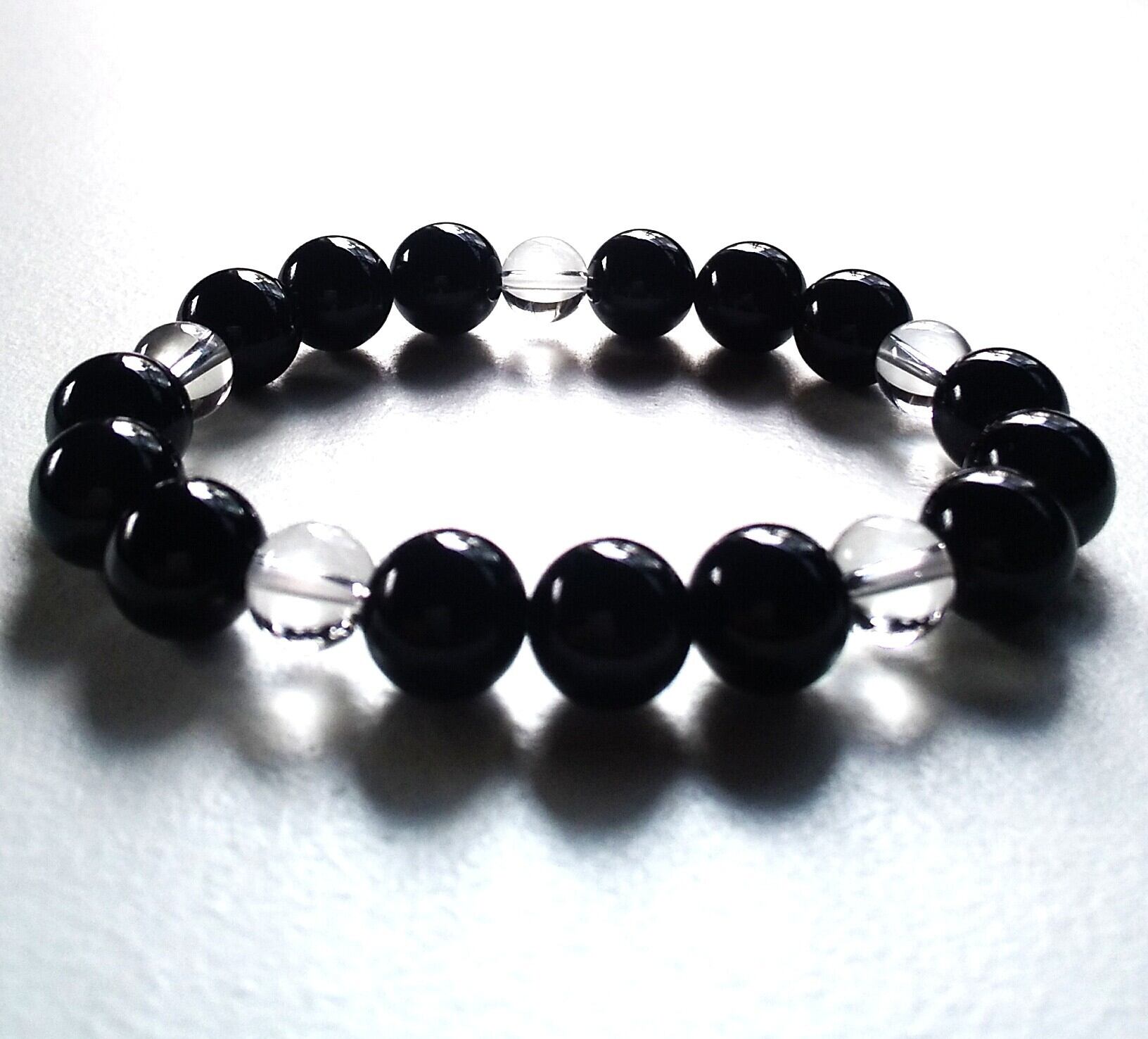 天然石:ブラックオニキス10mm×15個・5A水晶8mm×5個