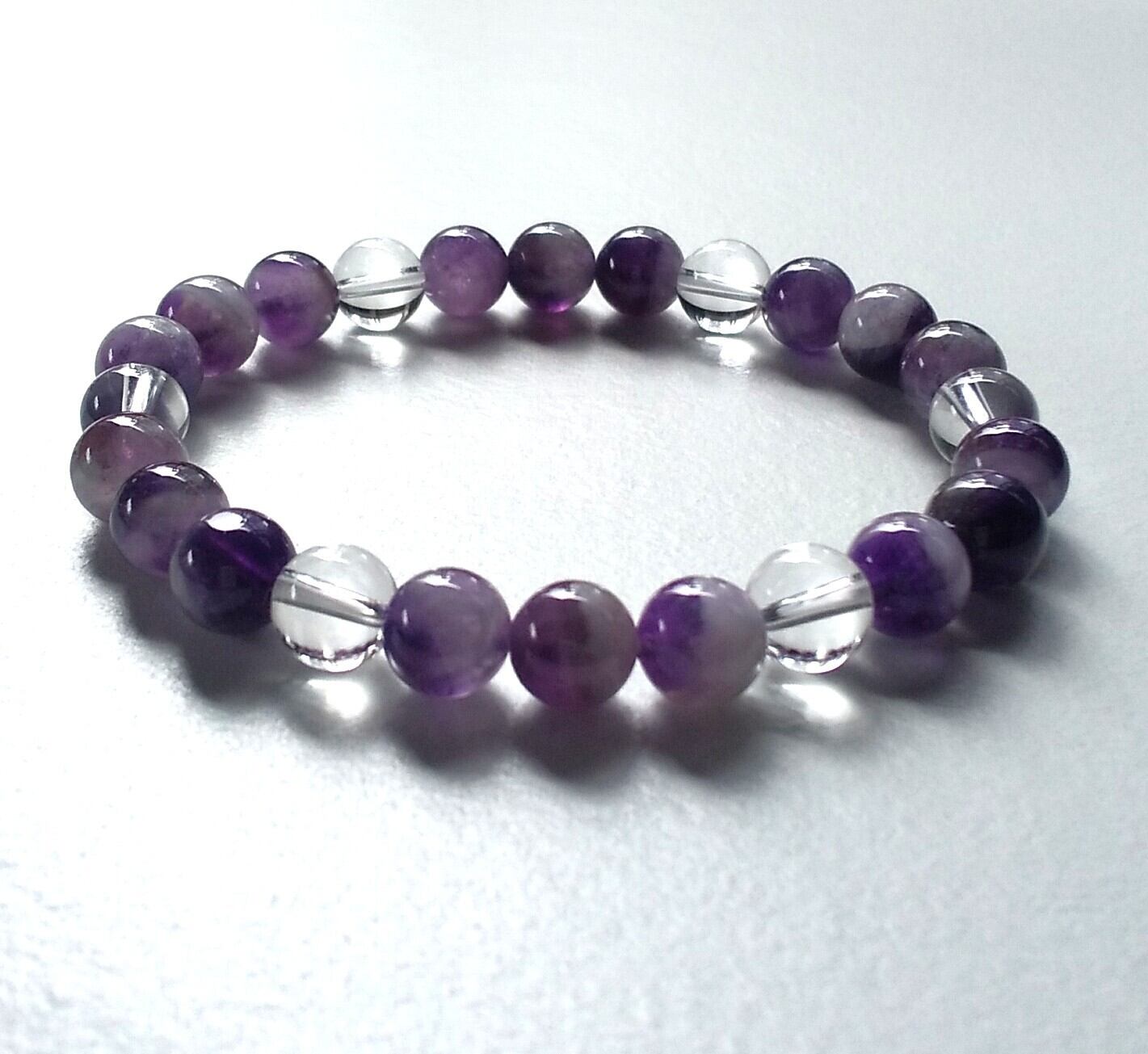 天然石:アメジスト8mm×18個・5A水晶8mm×6個