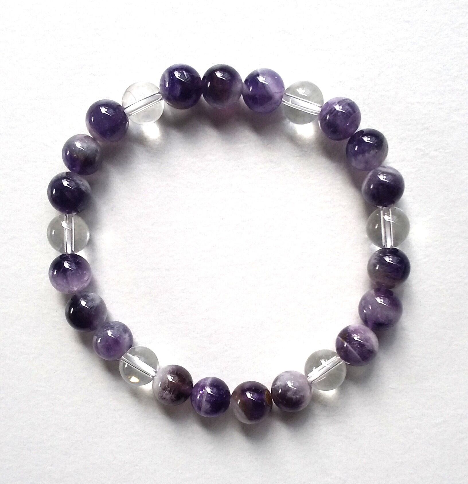 天然石:アメジスト8mm×19個・5A水晶8mm×6個