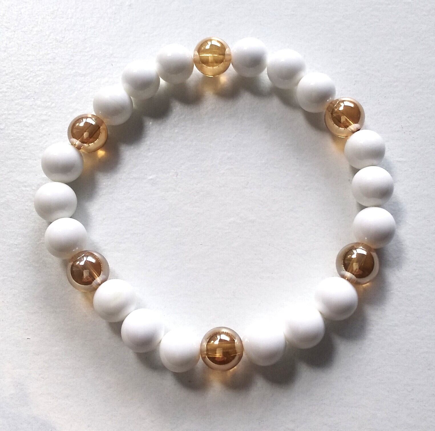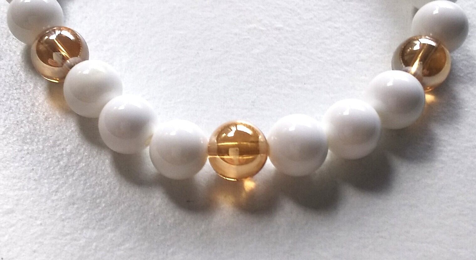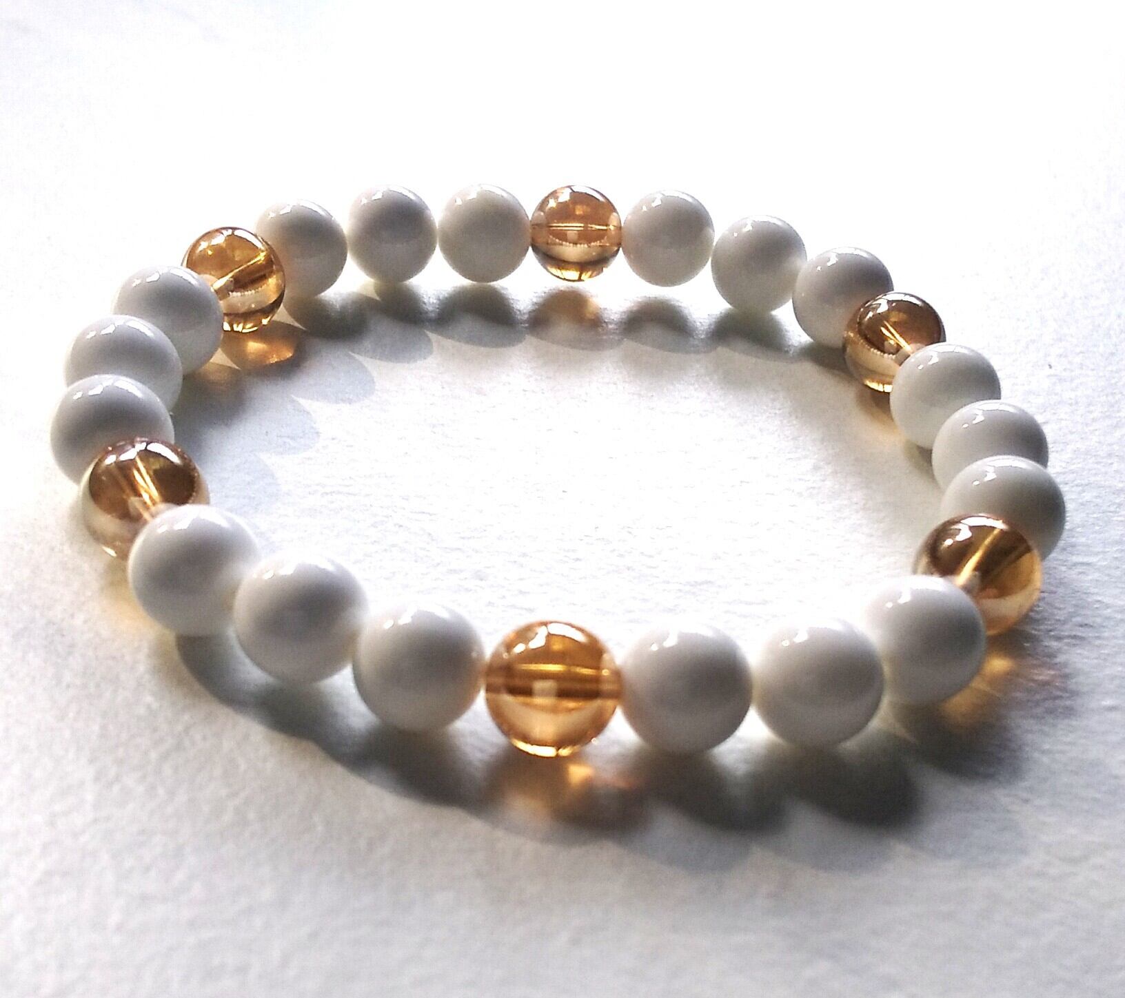 天然石 ホワイトオニキスとゴールデンオーラ水晶六芒星のハンドメイドのパワーストーンお守りブレスレット 1点ものです。